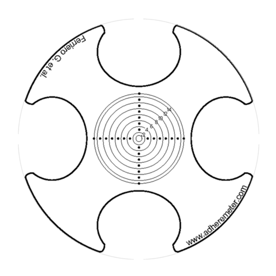 It is a cheap and easy-to-use instrument with ergonomic shape, consisting of 9 concentric rings with radii of 1, 2, 4, 6, 8, 10, 12, 14, and 15 mm,